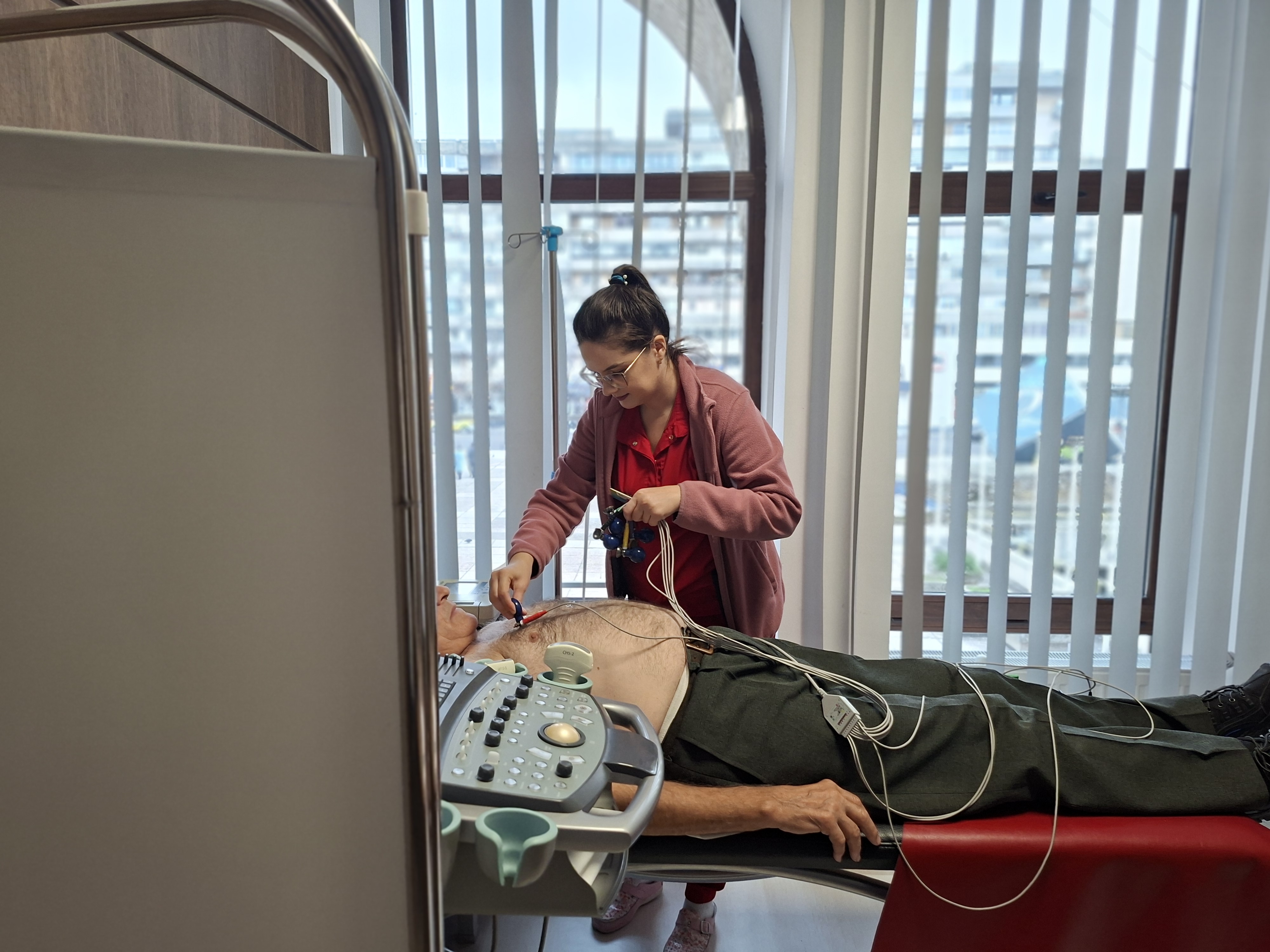 În cadrul consultului de medicină internă s-au efectuat următoarele determinări: măsurarea tensiunii arteriale, efectuarea electrocardiogramei (EKG) și a ecografiei abdomino-pelvine.